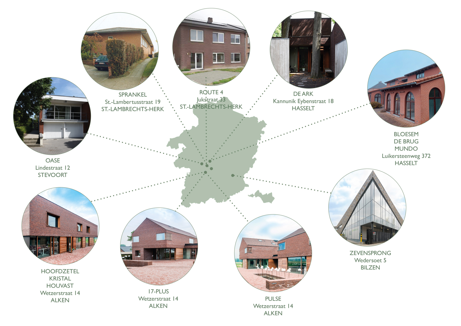 De Wiekslag zorgt voor begeleiding op maat. Dit wil zeggen dat elk gezin thuisbegeleiding krijgt. We werken wekelijks samen met de ouders aan hun zorgen zodat ze terug in hun kracht komen te staan. Op maat van het gezin gaan we samen aan de slag met vooropgestelde doelen. Indien nodig wordt de thuisbegeleiding aangevuld met verblijf in een leefgroep, opvang in een dagcentrum of ondersteuning om zelfstandig te wonen. Gezinnen hoeven geen eigen bijdrage te betalen. Ons werkgebied ligt voornamelijk in Midden en Zuid Limburg (groene regio op de kaart). De Wiekslag vzw wordt gesubsidieerd door het Vlaams Agentschap Opgroeien.
